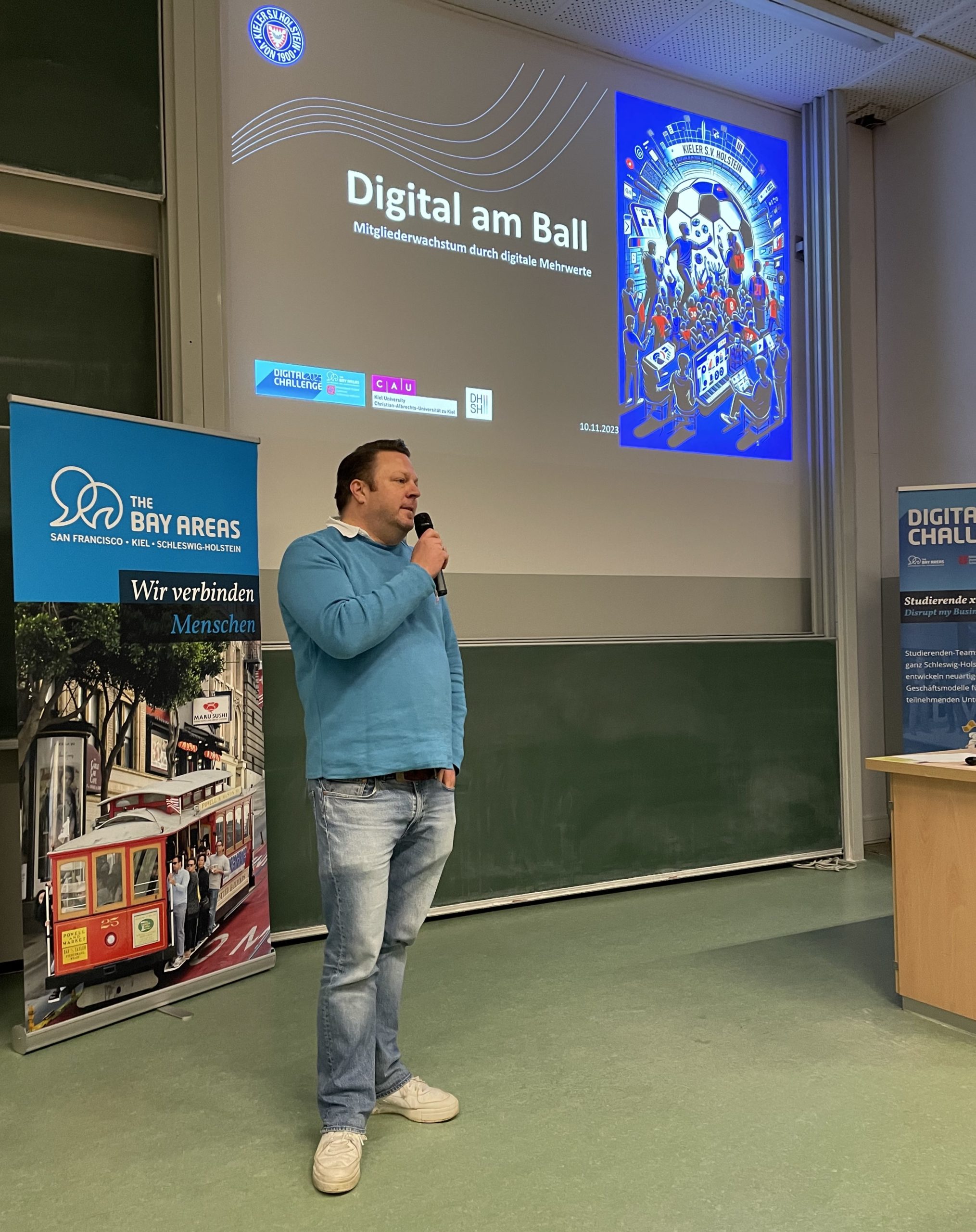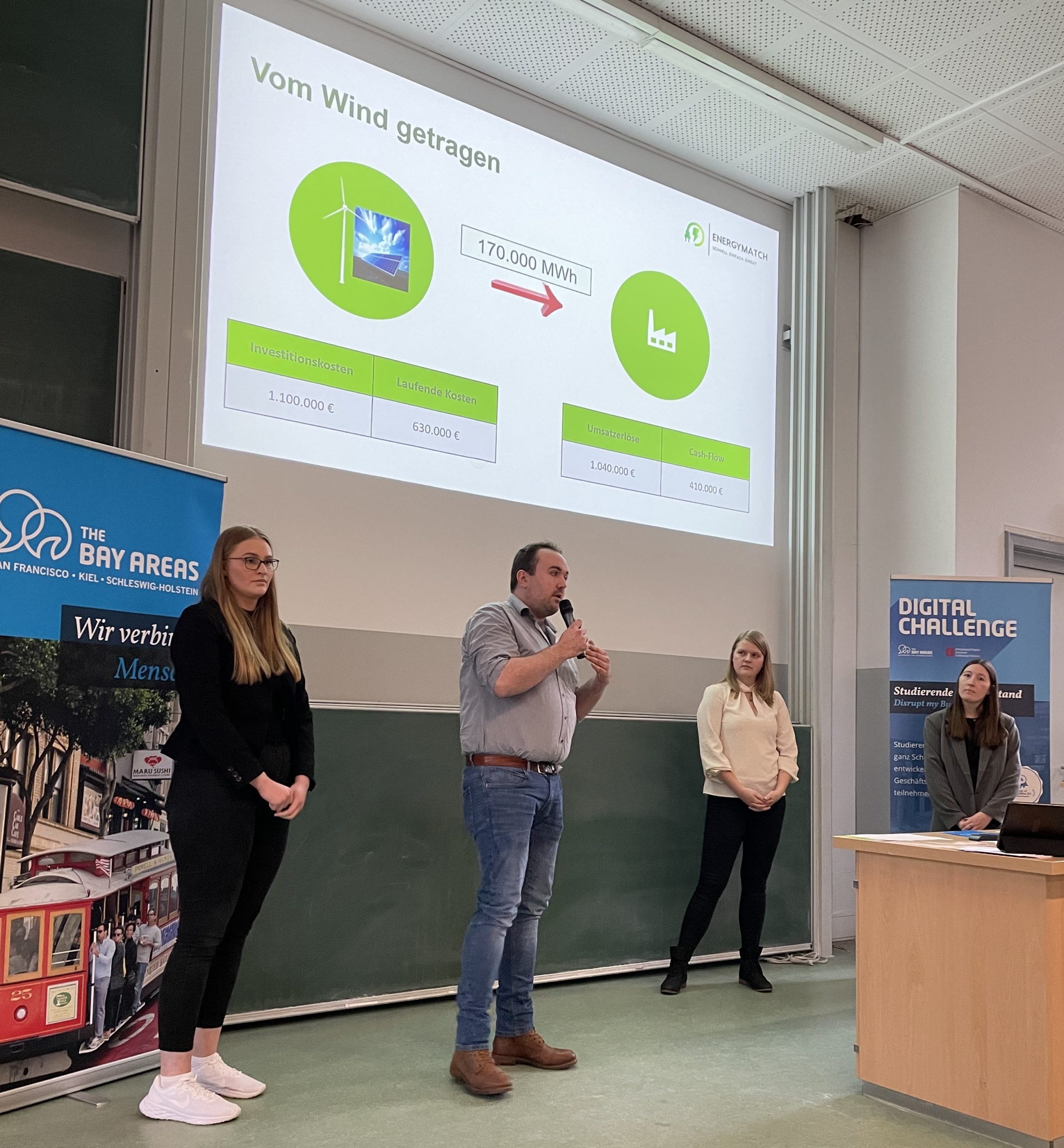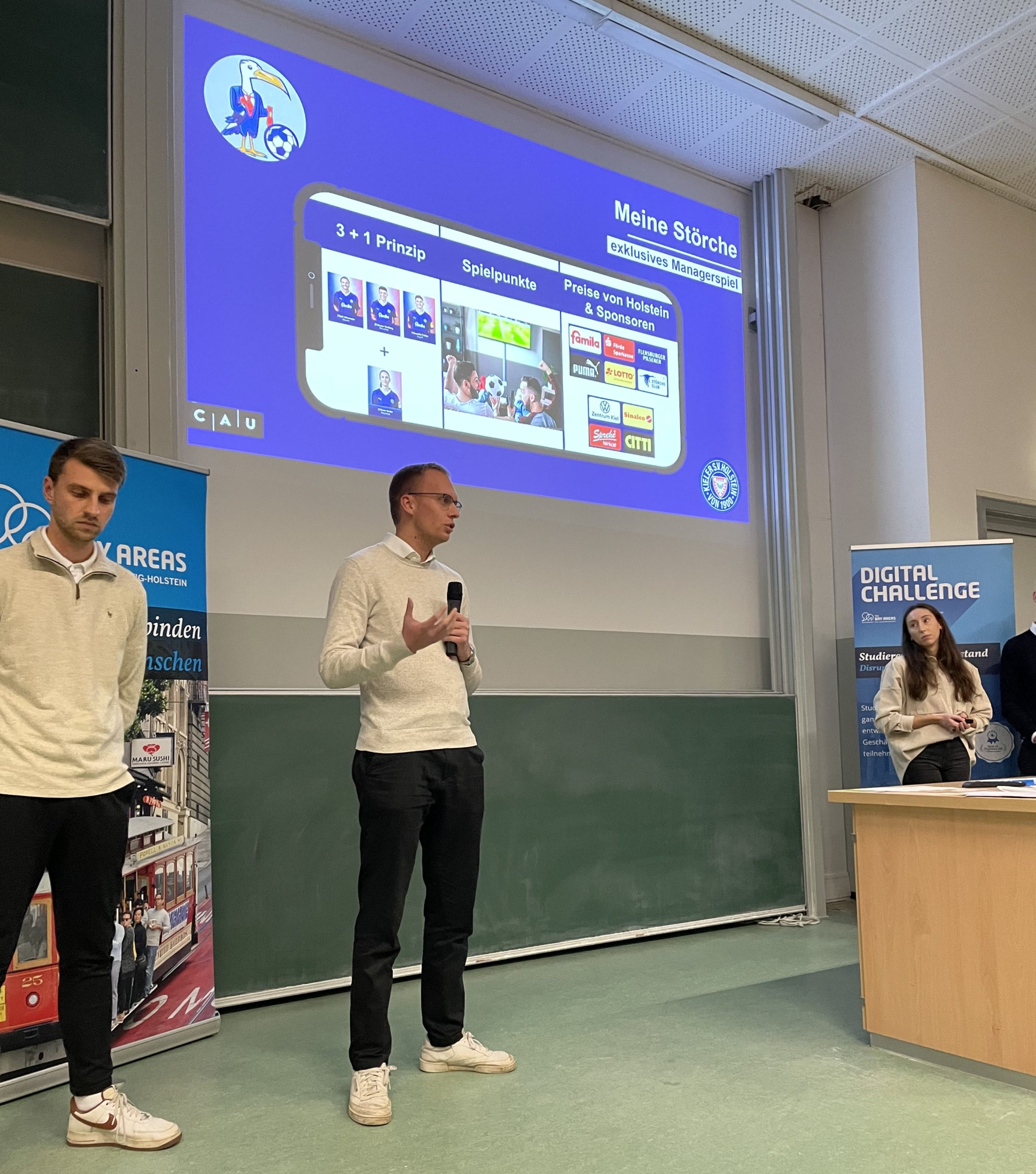 For ten days, almost 50 students worked intensively on business models and visions. True to the motto of the Digital Challenge 2023: Innovate my business. The result: great ideas relating to apps, artificial intelligence and augmented reality, which Team SE, Holstein Kiel, Idalabs, Heidelberg and Bürgerwindpark Janneby can use to launch further into the future. At the final, the board of experts from universities, companies and business developers assessed the degree of innovation of the ideas as well as their feasibility and sustainability.
