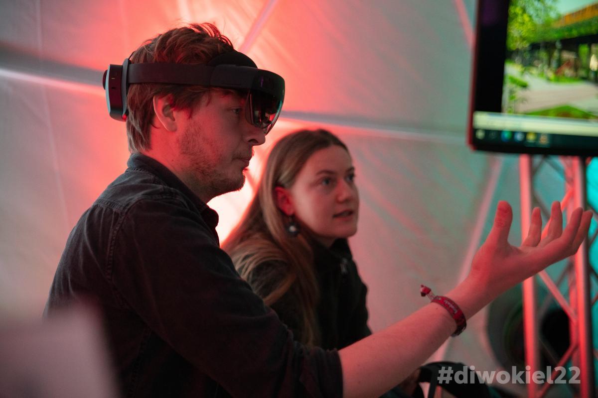 At the subsequent get-together in the WiZe Dome, guests were able to test interactive tools such as AR glasses from raumX and iPads from the Smart KielRegion. The visualizations "Visual Utopia" by Jan Kamensky were shown on a screen.
