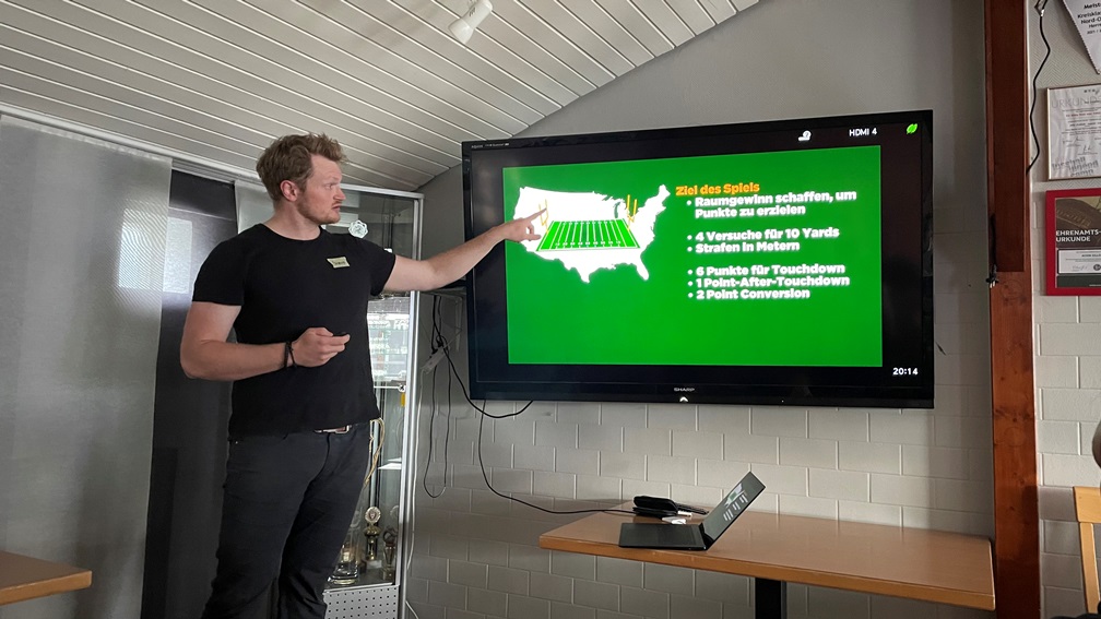 This BAM was definitely sporty. We learned a lot about the game - it's all about gaining space - and the history of the club. It was founded in 1988 and now has more than 600 members. The Canes have already won championship and runner-up titles at both German and European level. In addition to the 1st men's team, which we were able to watch in training, there are various other teams for men, women, youth and flag teams that play without physical contact. The club also has three cheerleading teams, which, in addition to performing at matches, also successfully take part in state and German championships.